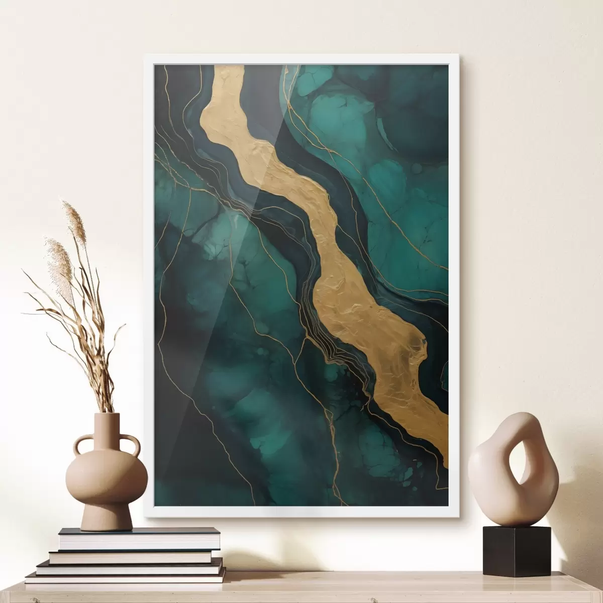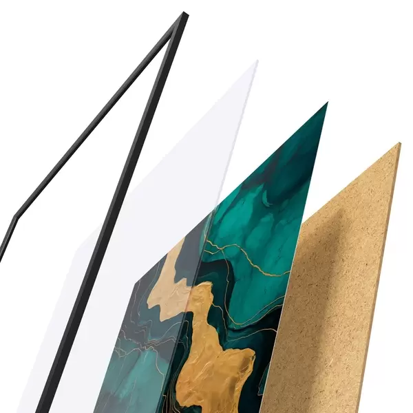 Le poster se compose d'un cadre, d'un plexiglas, d'une image imprimée et d'un support en aggloméré. Le poster peut être immédiatement accroché au mur grâce aux fixations au dos.