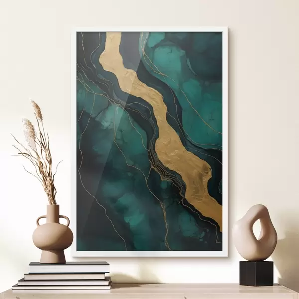 Affiche Motif abstrait avec de profondes nuances de vert et un élément chaud en contraste Non f42934