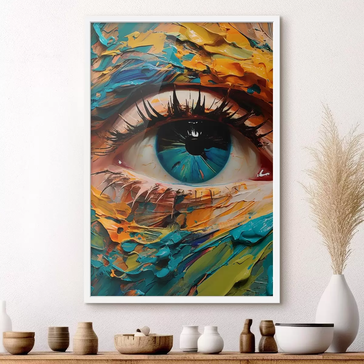 Affiche Portrait abstrait d'un œil aux couleurs vives, avec un effet de peinture texturée Non f42938