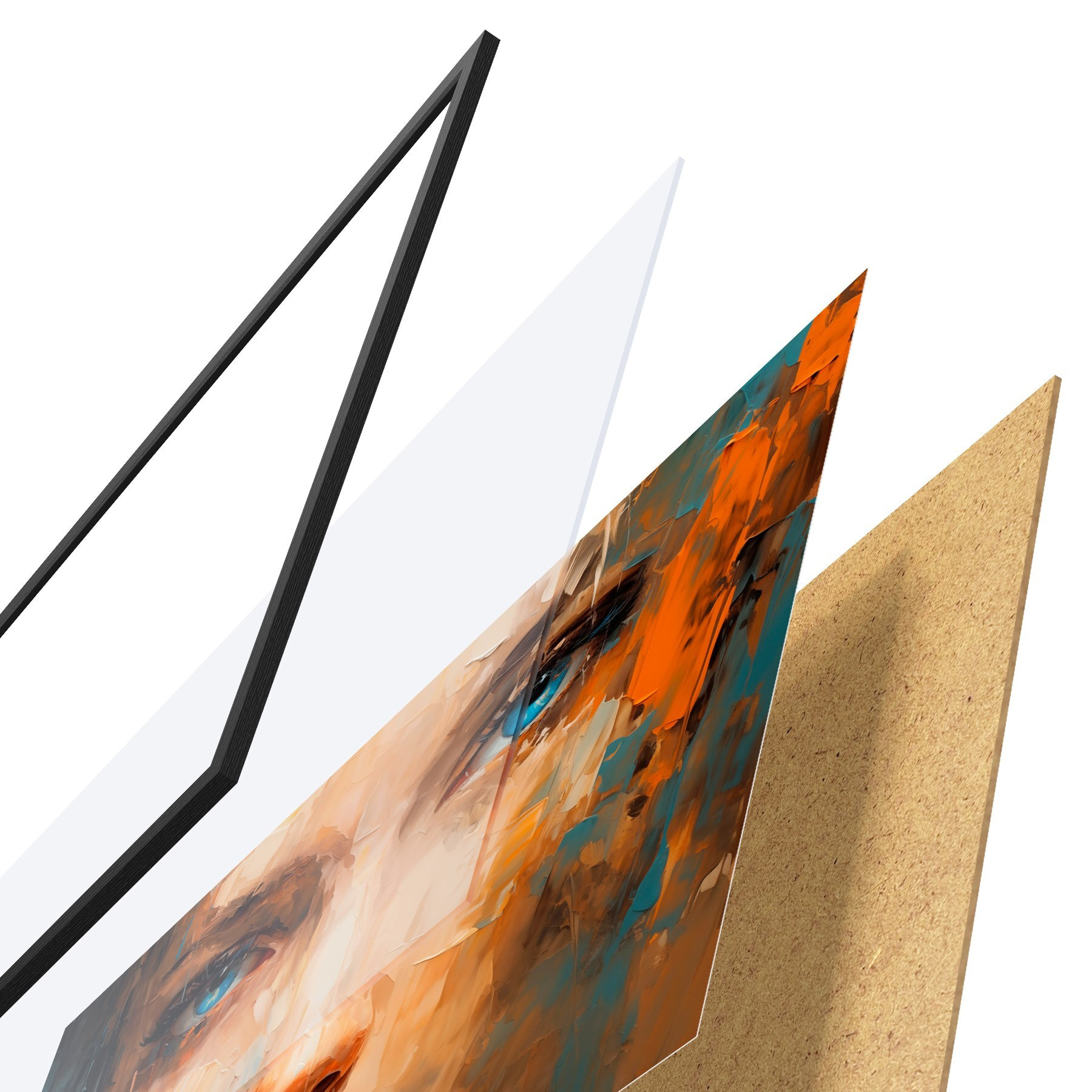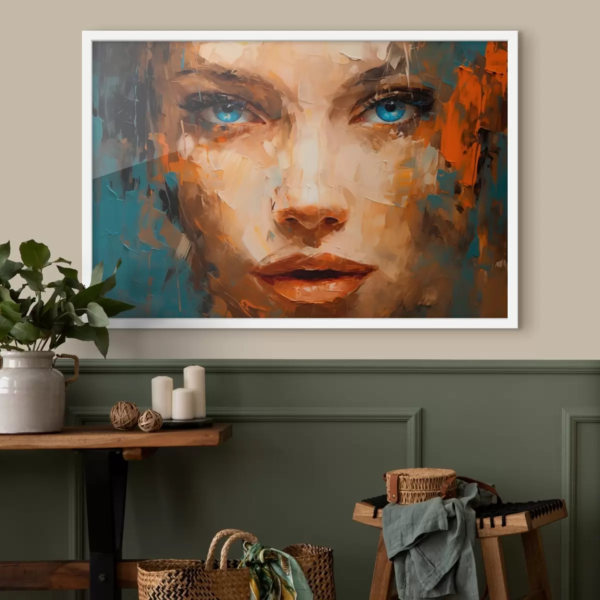 Affiche Portrait abstrait d'une femme avec des coups de pinceau audacieux et des yeux bleus saisissants f42939