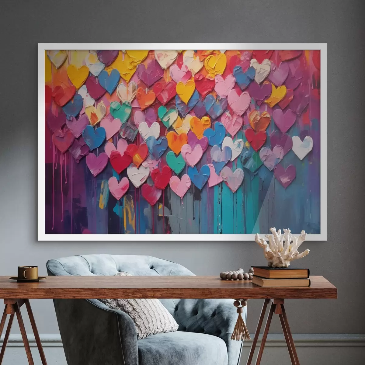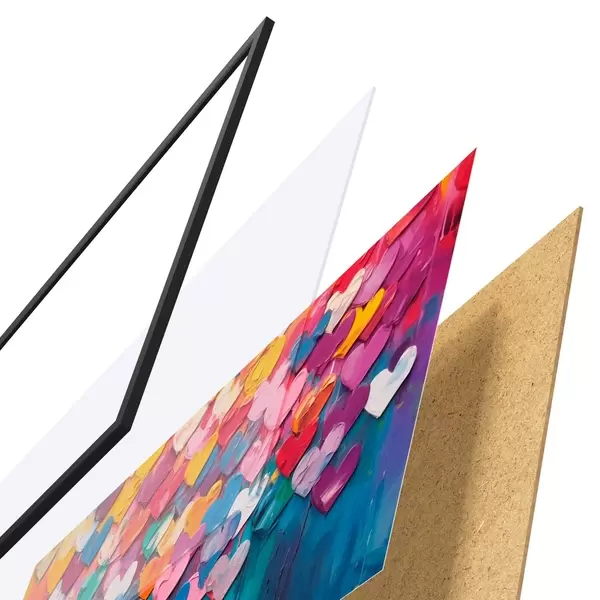 Le poster se compose d'un cadre, d'un plexiglas, d'une image imprimée et d'un support en aggloméré. Le poster peut être immédiatement accroché au mur grâce aux fixations au dos.