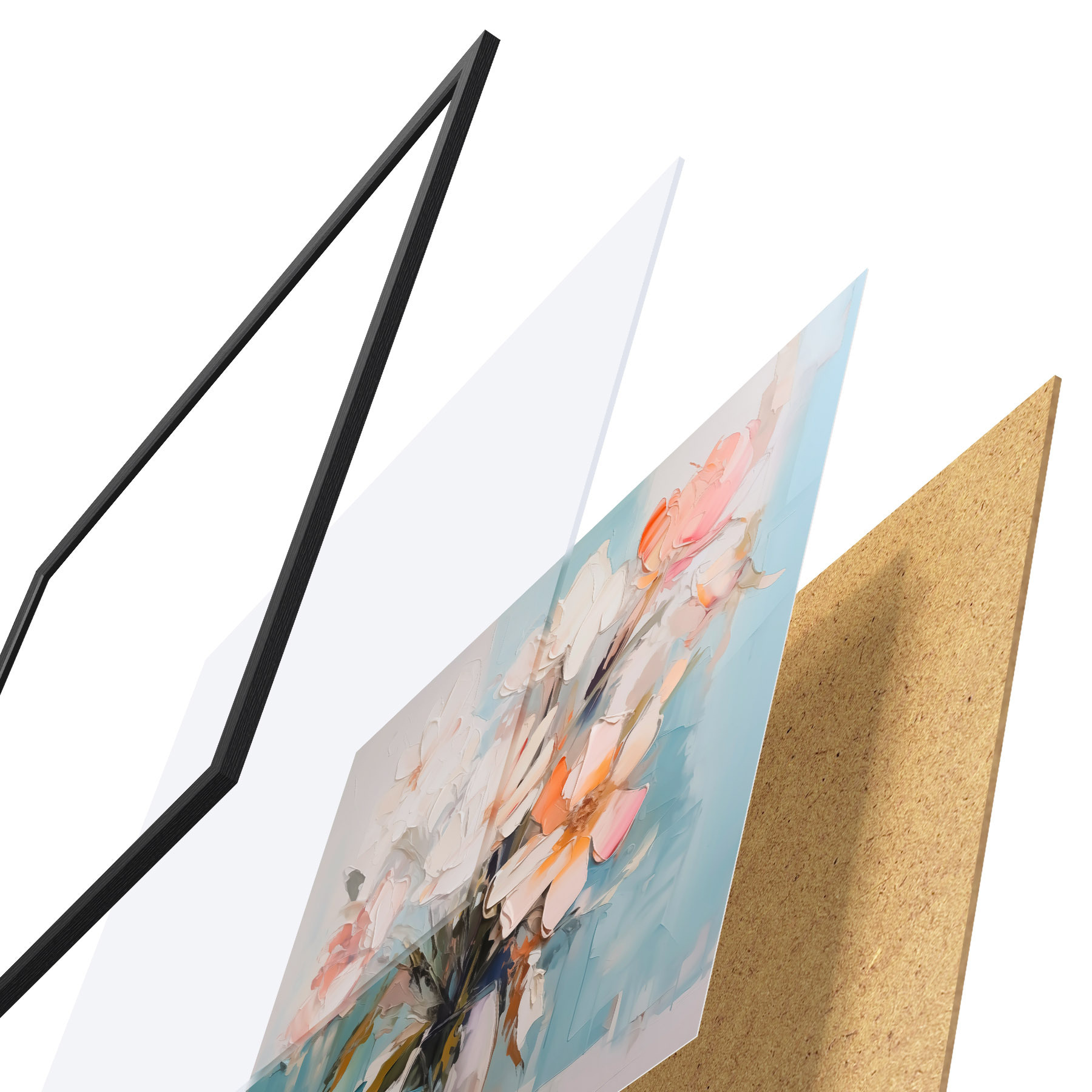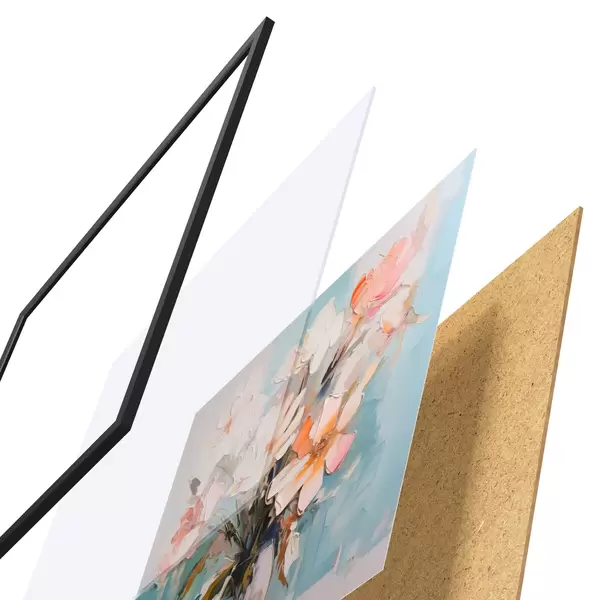 Le poster se compose d'un cadre, d'un plexiglas, d'une image imprimée et d'un support en aggloméré. Le poster peut être immédiatement accroché au mur grâce aux fixations au dos.