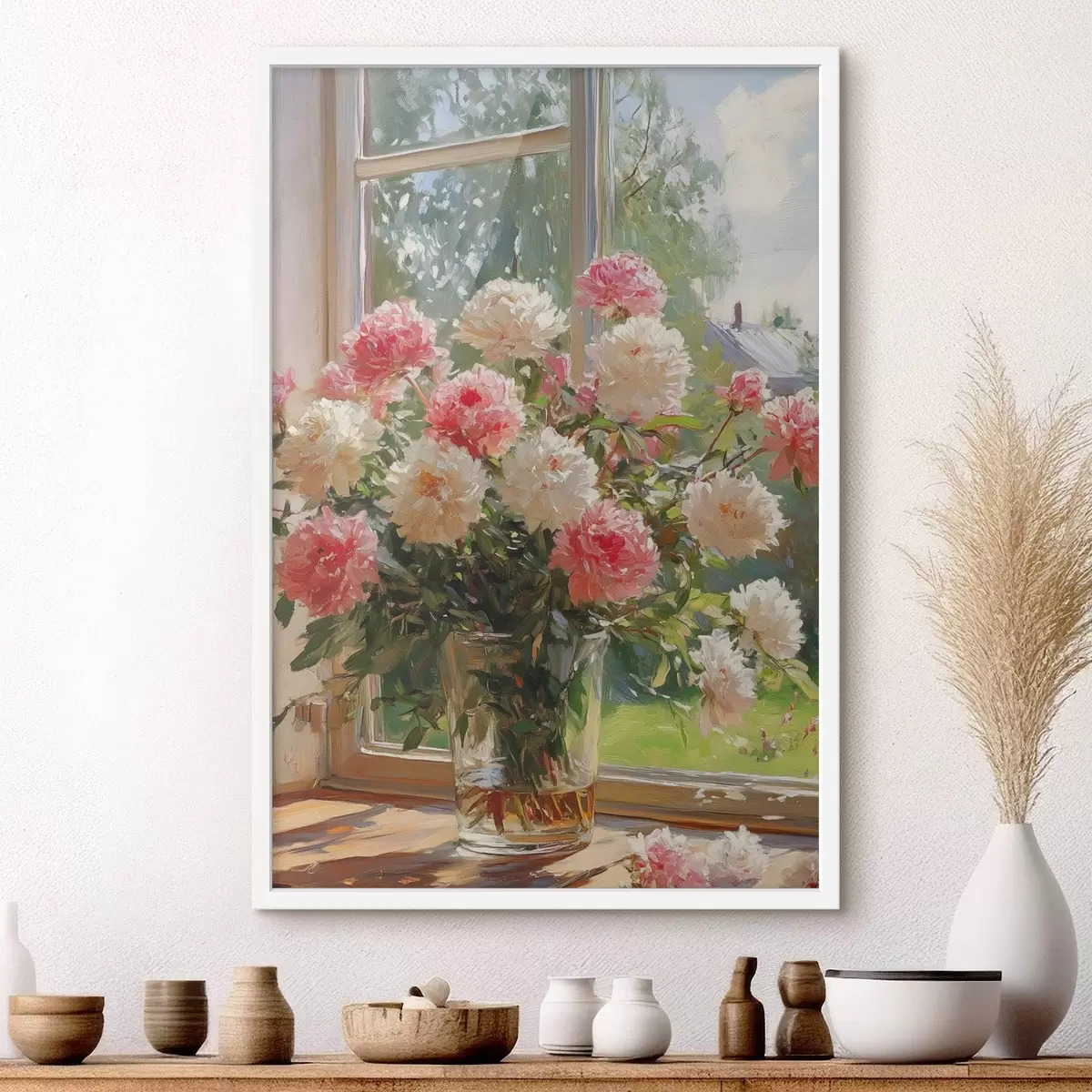 Affiche Bouquet sur la fenêtre dans le style de la peinture à l'huile Non f42978