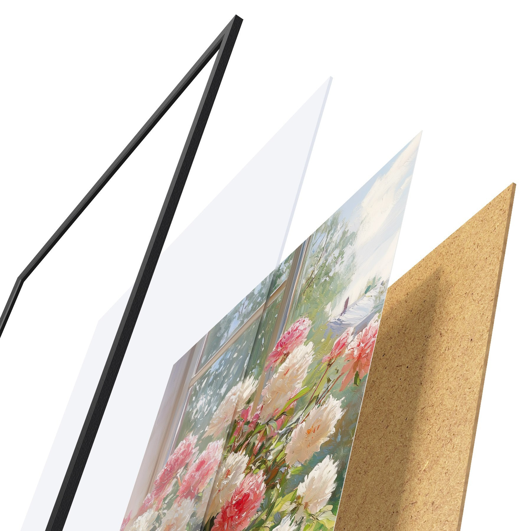 Le poster se compose d'un cadre, d'un plexiglas, d'une image imprimée et d'un support en aggloméré. Le poster peut être immédiatement accroché au mur grâce aux fixations au dos.