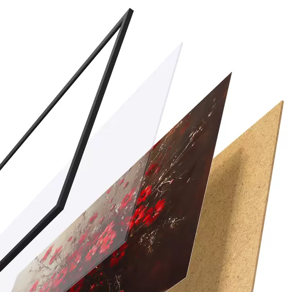 Le poster se compose d'un cadre, d'un plexiglas, d'une image imprimée et d'un support en aggloméré. Le poster peut être immédiatement accroché au mur grâce aux fixations au dos.