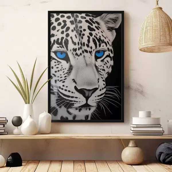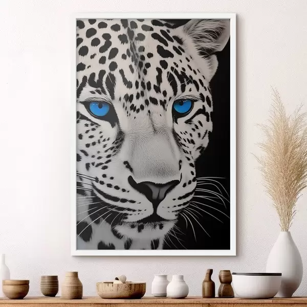 Affiche Portrait en noir et blanc d'un léopard aux yeux bleus f43008
