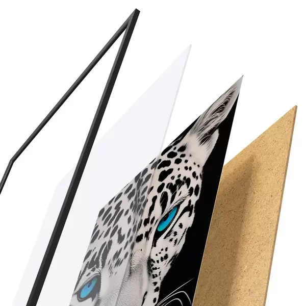 Le poster se compose d'un cadre, d'un plexiglas, d'une image imprimée et d'un support en aggloméré. Le poster peut être immédiatement accroché au mur grâce aux fixations au dos.
