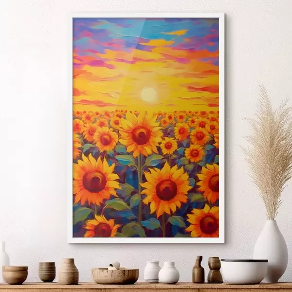 Affiche Champ de tournesols au coucher du soleil Non f43010