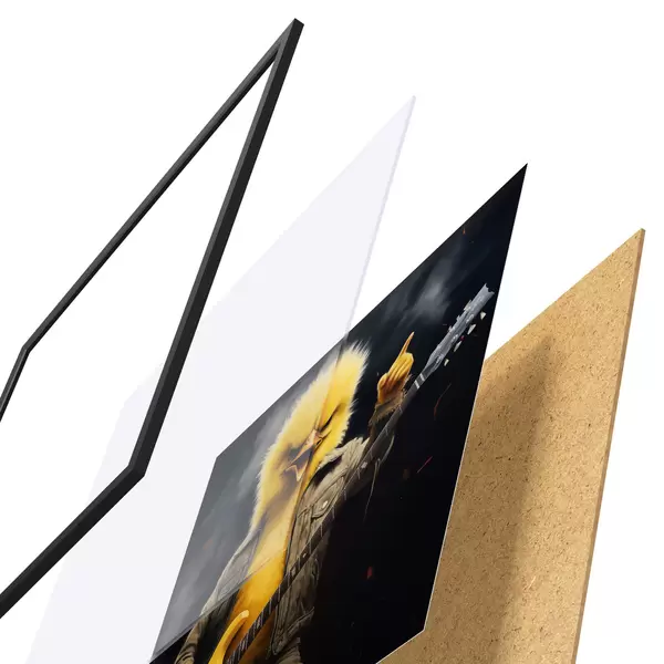 Le poster se compose d'un cadre, d'un plexiglas, d'une image imprimée et d'un support en aggloméré. Le poster peut être immédiatement accroché au mur grâce aux fixations au dos.