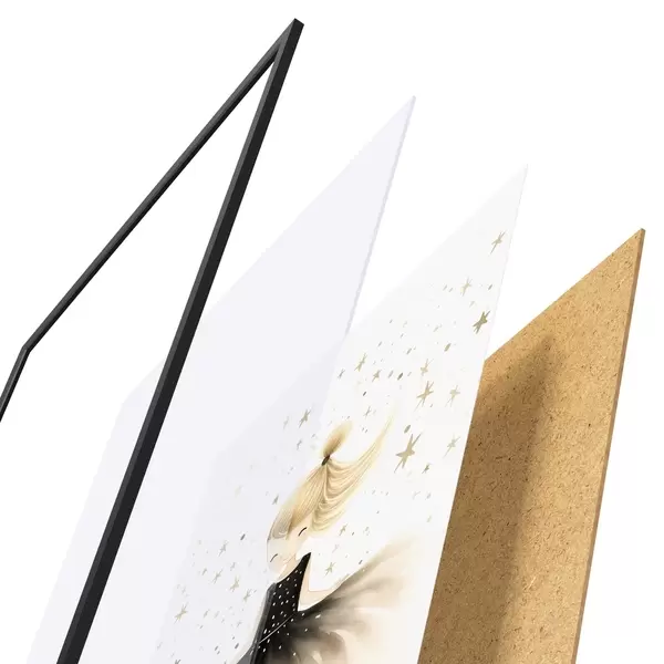 Le poster se compose d'un cadre, d'un plexiglas, d'une image imprimée et d'un support en aggloméré. Le poster peut être immédiatement accroché au mur grâce aux fixations au dos.
