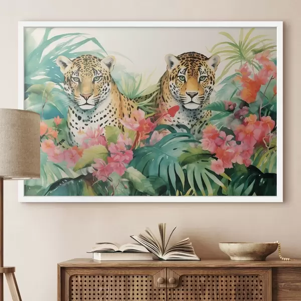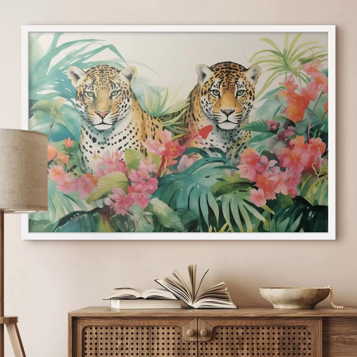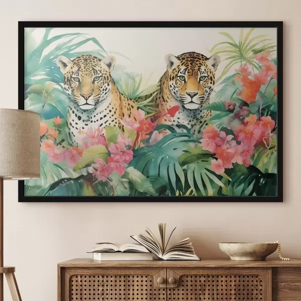 Affiche Un couple de léopards dans les fourrés tropicaux Non f43036