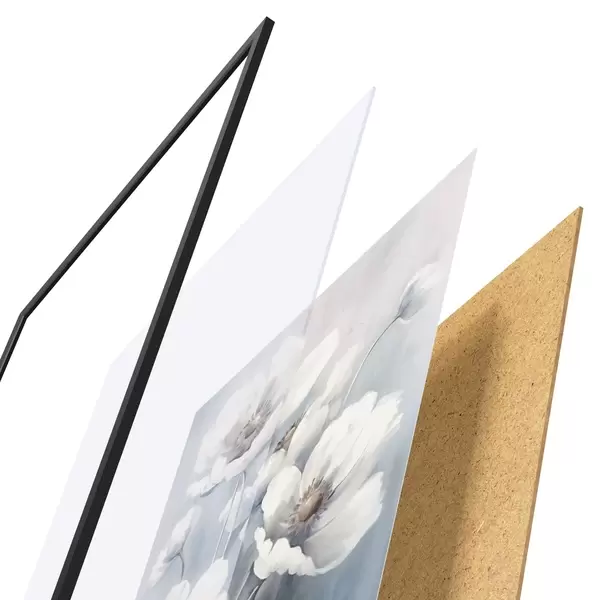 Le poster se compose d'un cadre, d'un plexiglas, d'une image imprimée et d'un support en aggloméré. Le poster peut être immédiatement accroché au mur grâce aux fixations au dos.