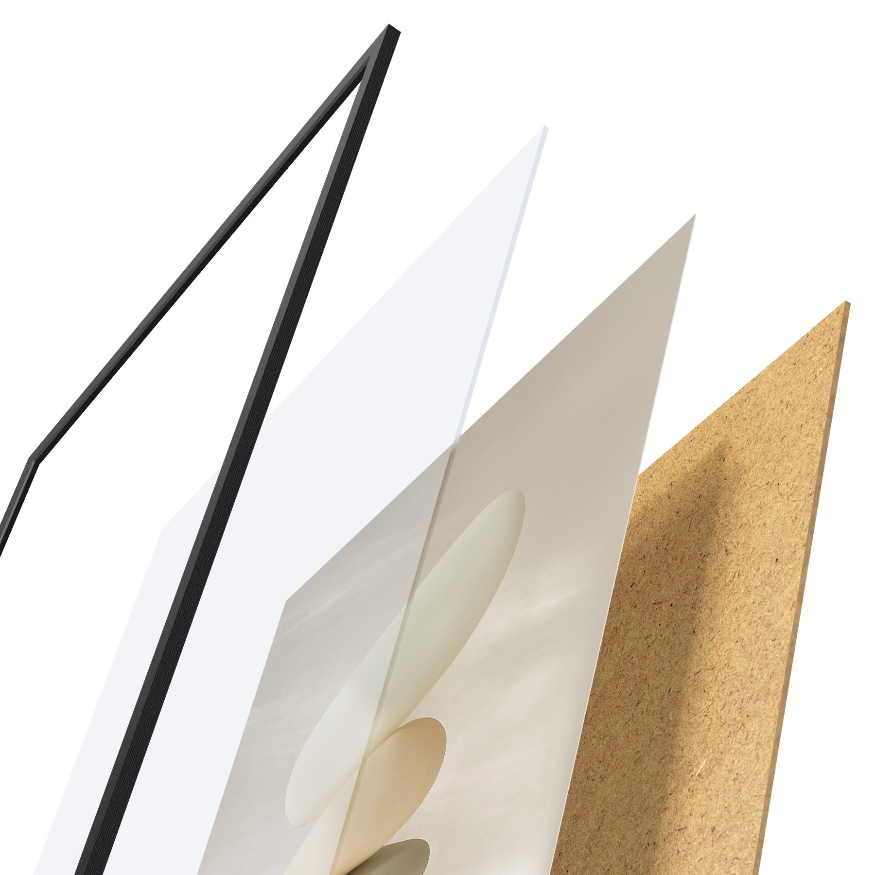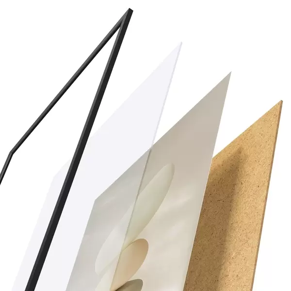 Le poster se compose d'un cadre, d'un plexiglas, d'une image imprimée et d'un support en aggloméré. Le poster peut être immédiatement accroché au mur grâce aux fixations au dos.