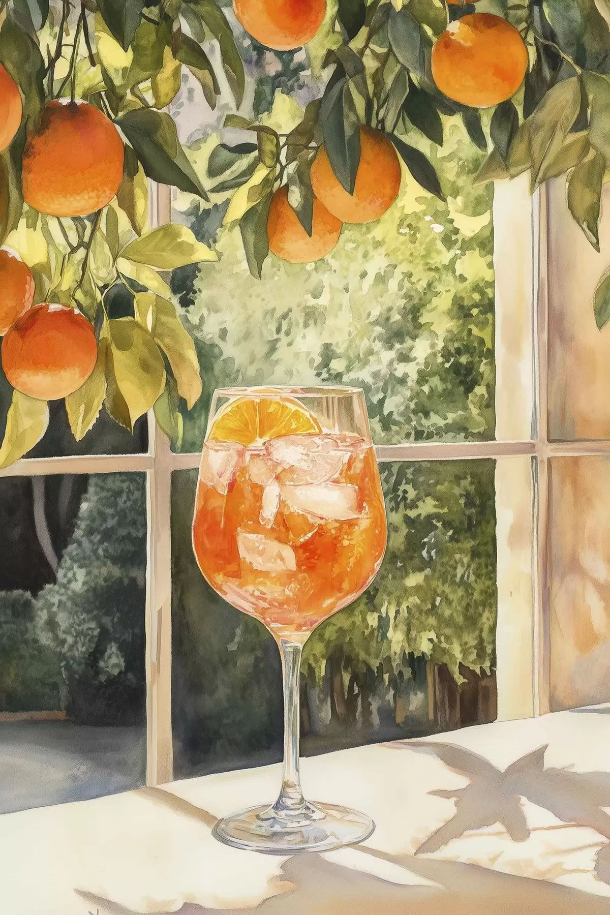 Affiche Cocktail délicieux avec des oranges, style rustique, aquarelle, nature Non f43060