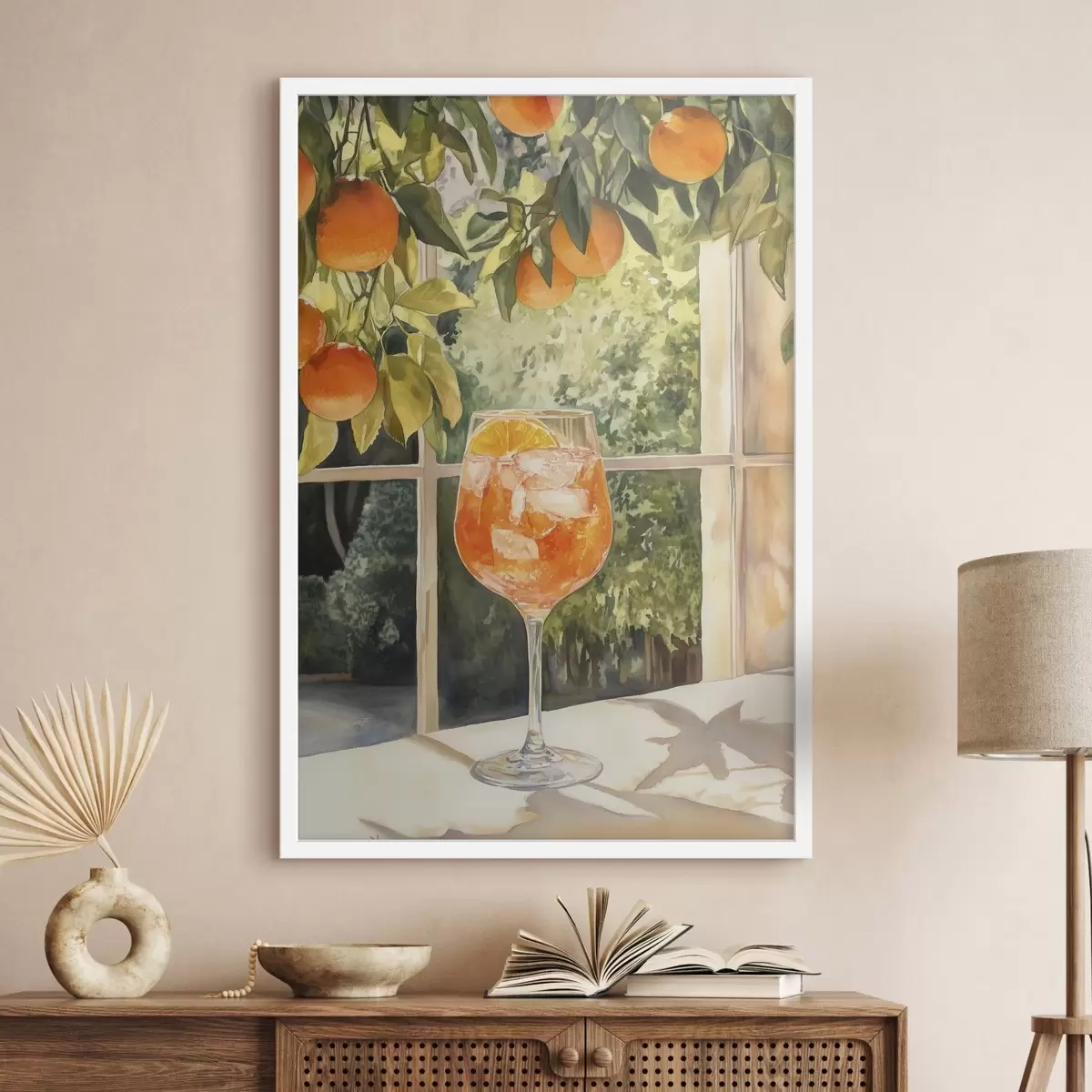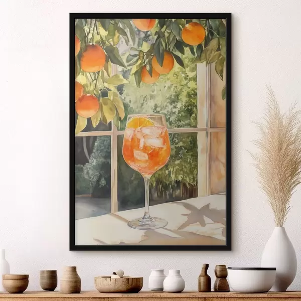 Affiche Cocktail délicieux avec des oranges, style rustique, aquarelle, nature f43060
