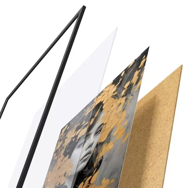 Le poster se compose d'un cadre, d'un plexiglas, d'une image imprimée et d'un support en aggloméré. Le poster peut être immédiatement accroché au mur grâce aux fixations au dos.