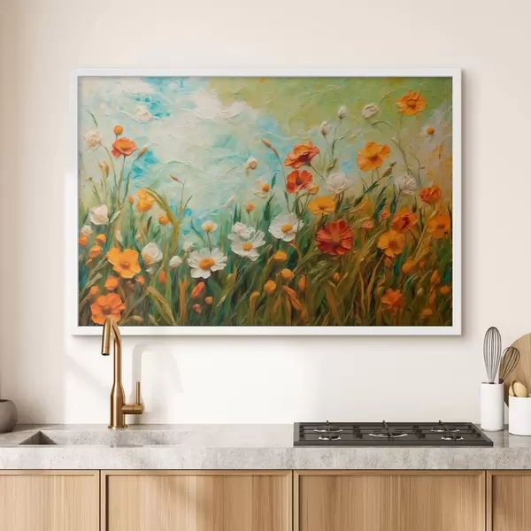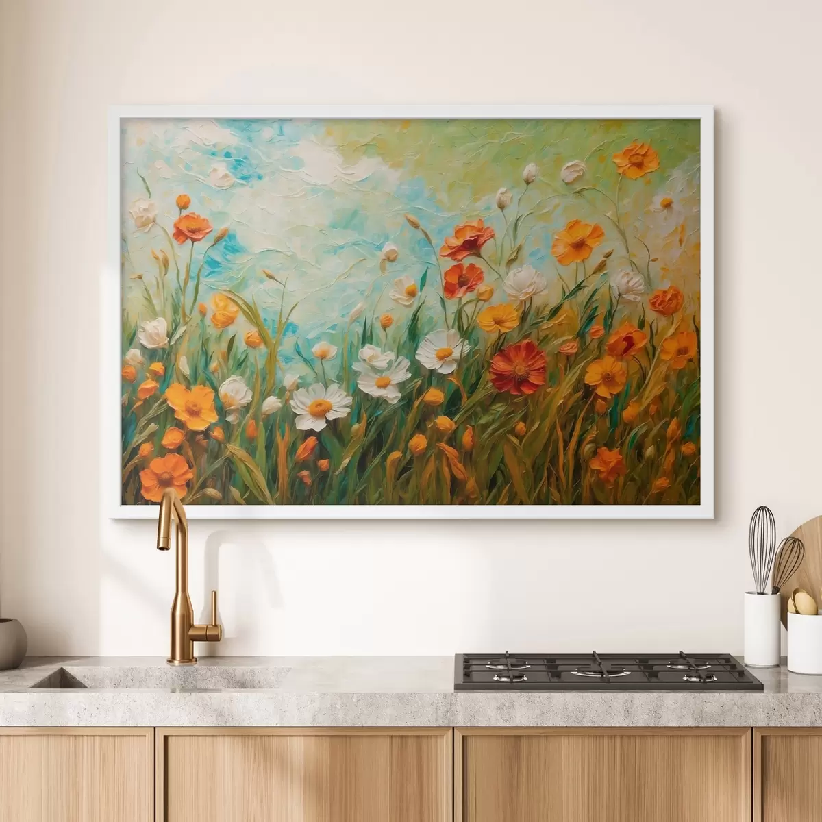 Affiche Champ de fleurs sur fond de ciel bleu abstrait f43100
