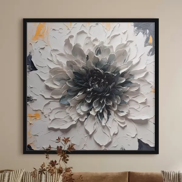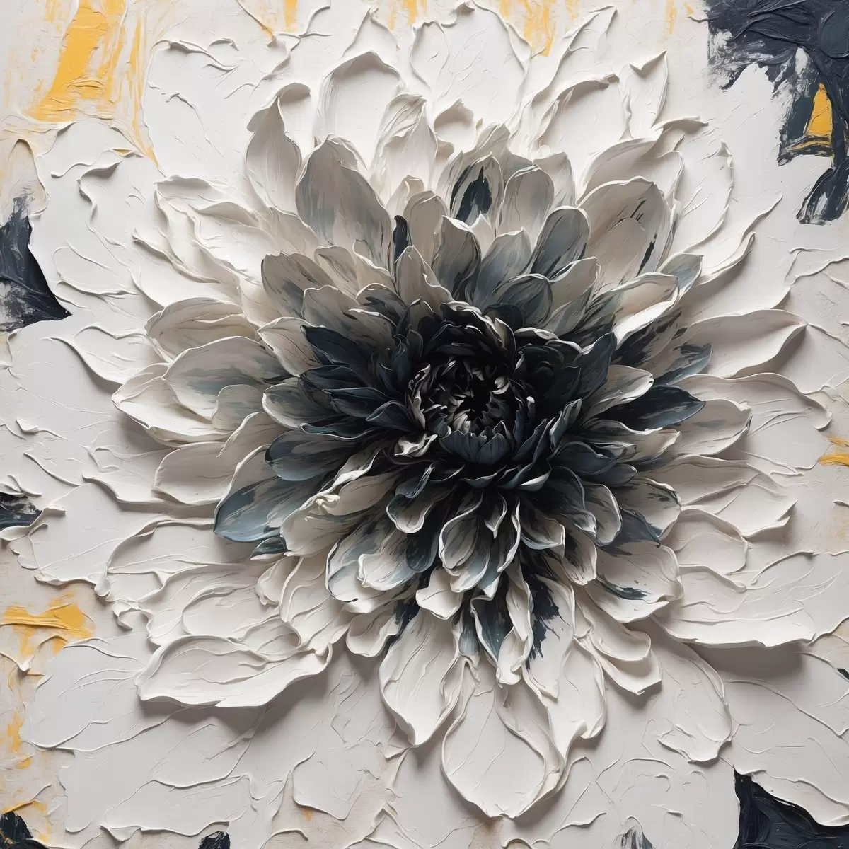 Affiche Fleur blanche au centre noir dans le style de la peinture à l'huile f43113