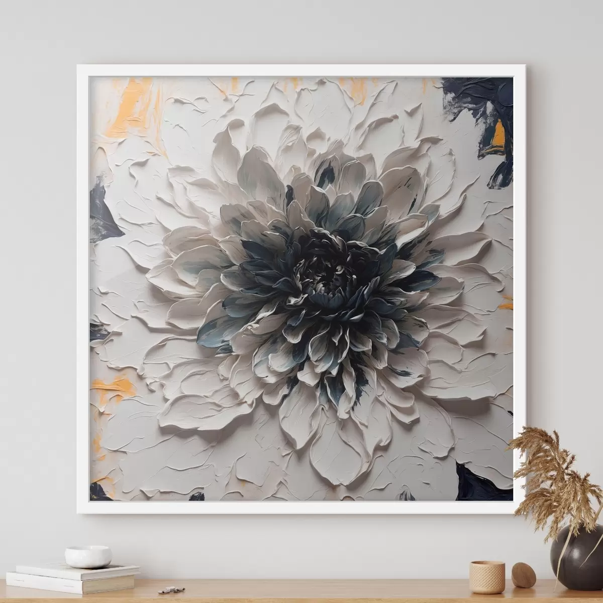 Affiche Fleur blanche au centre noir dans le style de la peinture à l'huile Non f43113