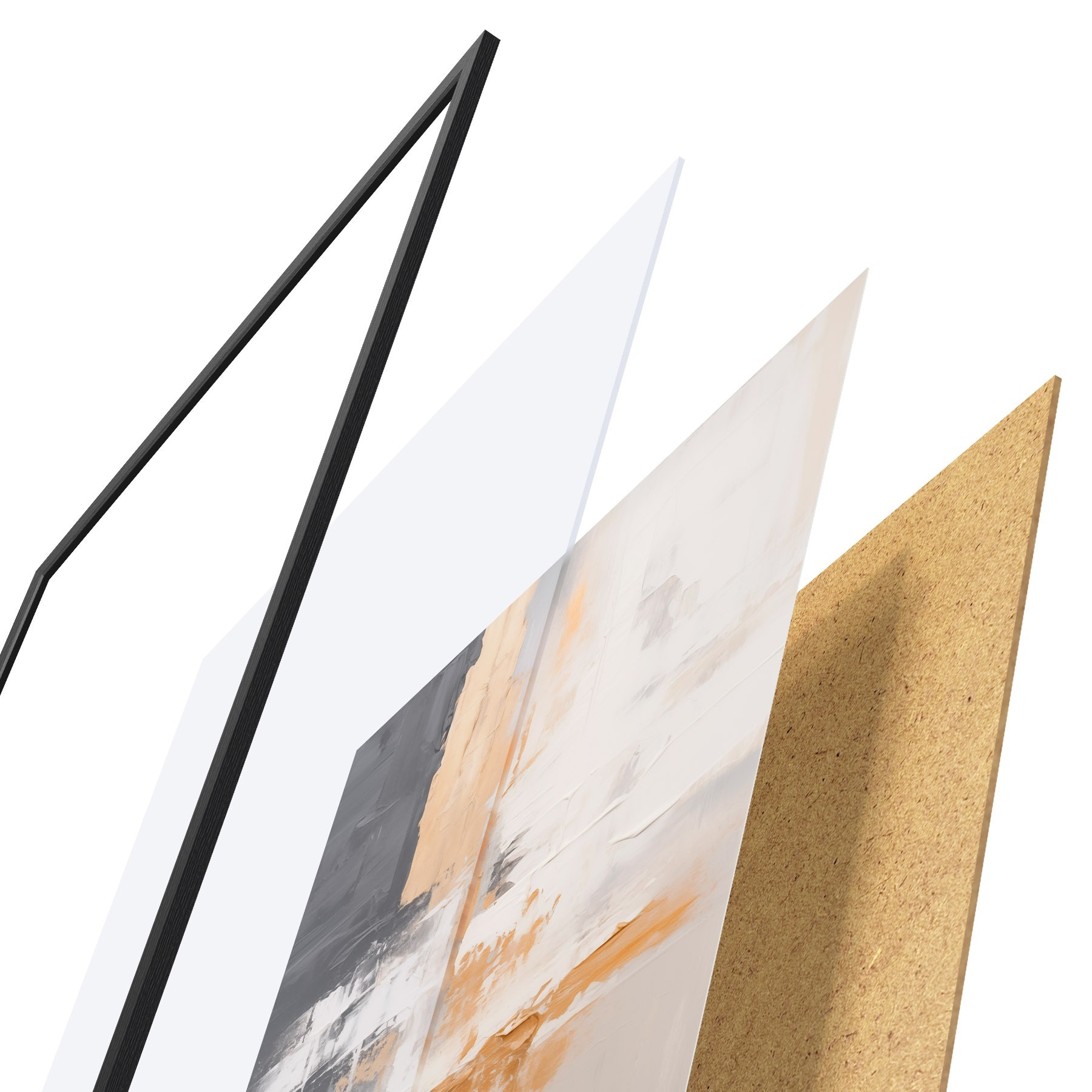 Le poster se compose d'un cadre, d'un plexiglas, d'une image imprimée et d'un support en aggloméré. Le poster peut être immédiatement accroché au mur grâce aux fixations au dos.