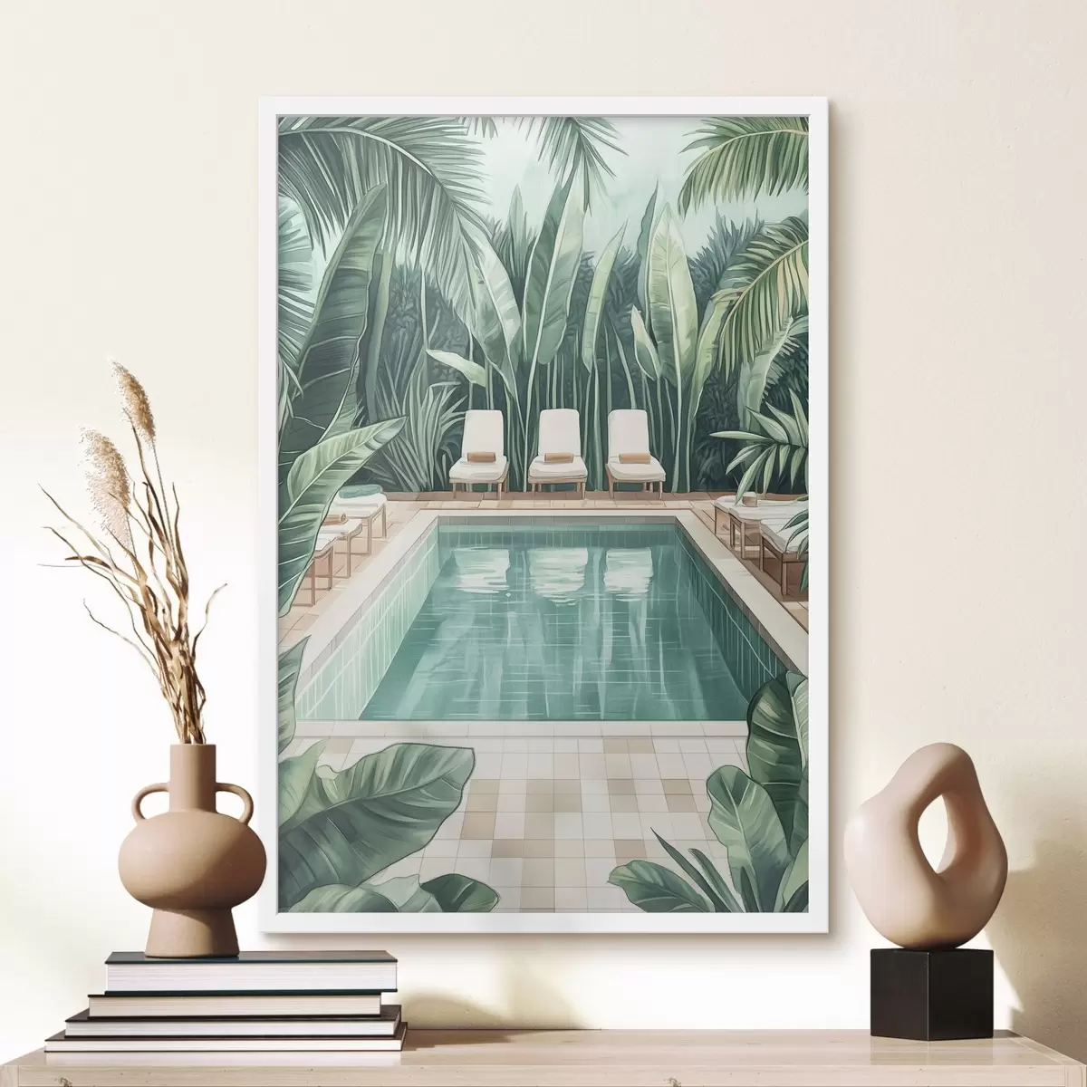 Affiche Piscine d'été esthétique dans un jardin tropical, style aquarelle Non f43192