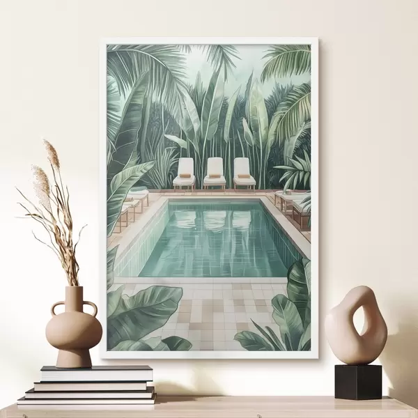 Affiche Piscine d'été esthétique dans un jardin tropical, style aquarelle f43192