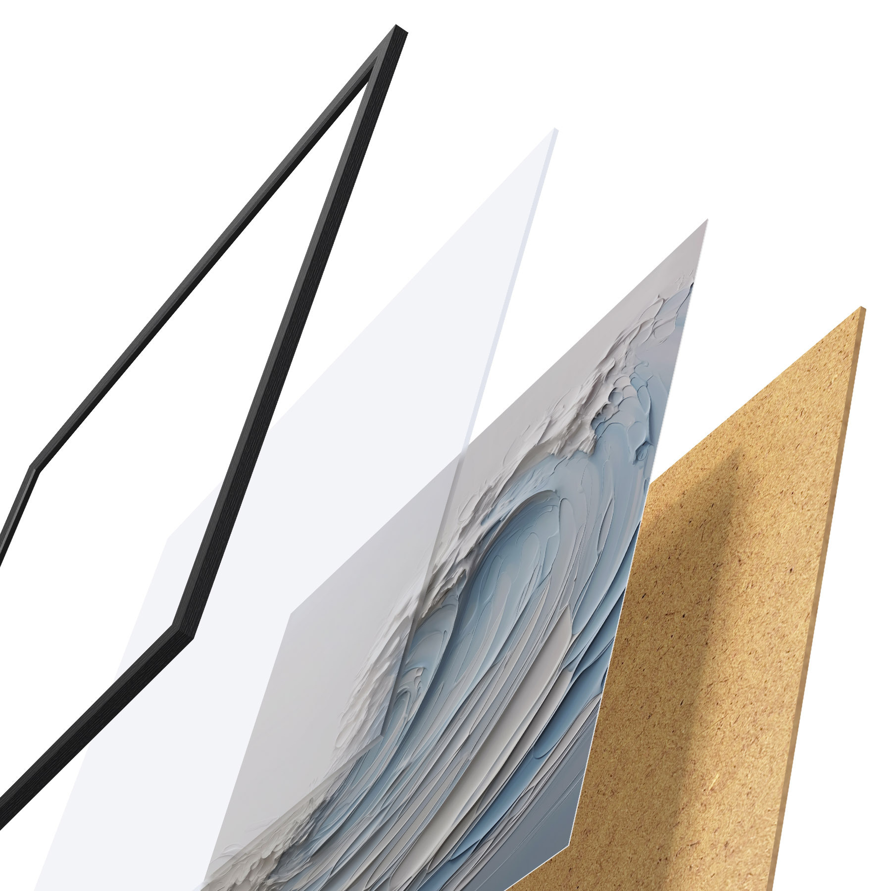 Le poster se compose d'un cadre, d'un plexiglas, d'une image imprimée et d'un support en aggloméré. Le poster peut être immédiatement accroché au mur grâce aux fixations au dos.