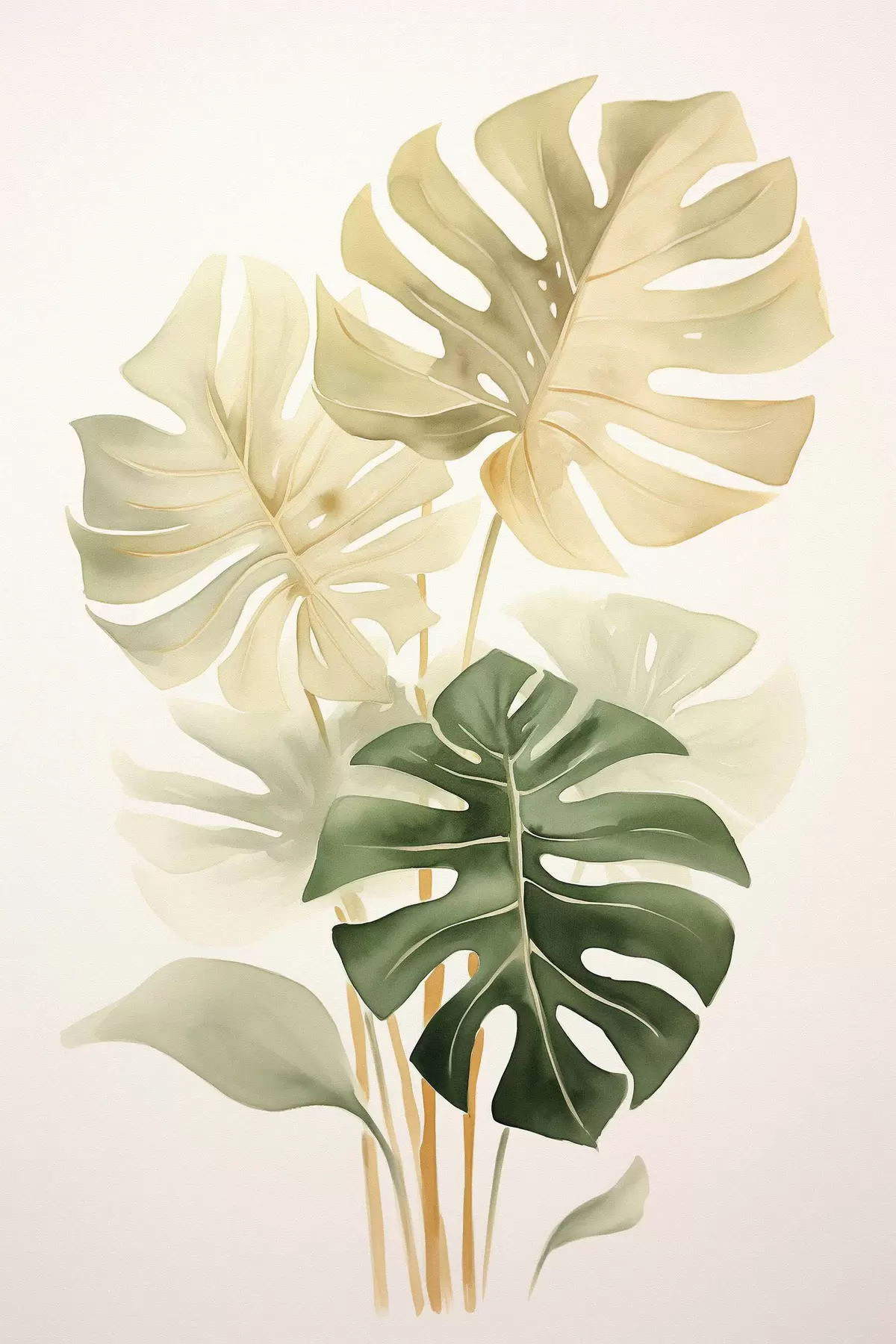 Affiche Feuilles de monstera, imitation d'aquarelle f43209