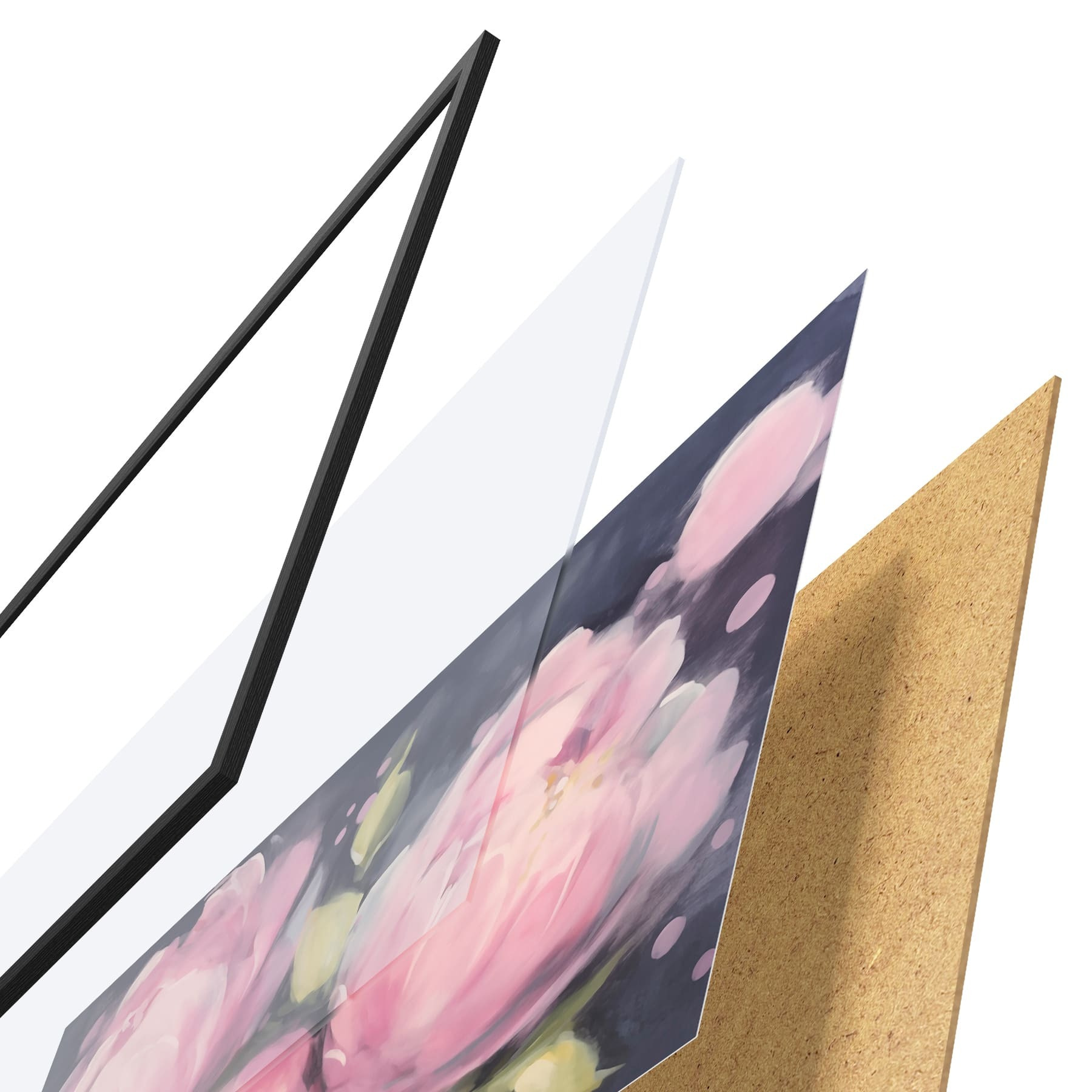 Le poster se compose d'un cadre, d'un plexiglas, d'une image imprimée et d'un support en aggloméré. Le poster peut être immédiatement accroché au mur grâce aux fixations au dos.