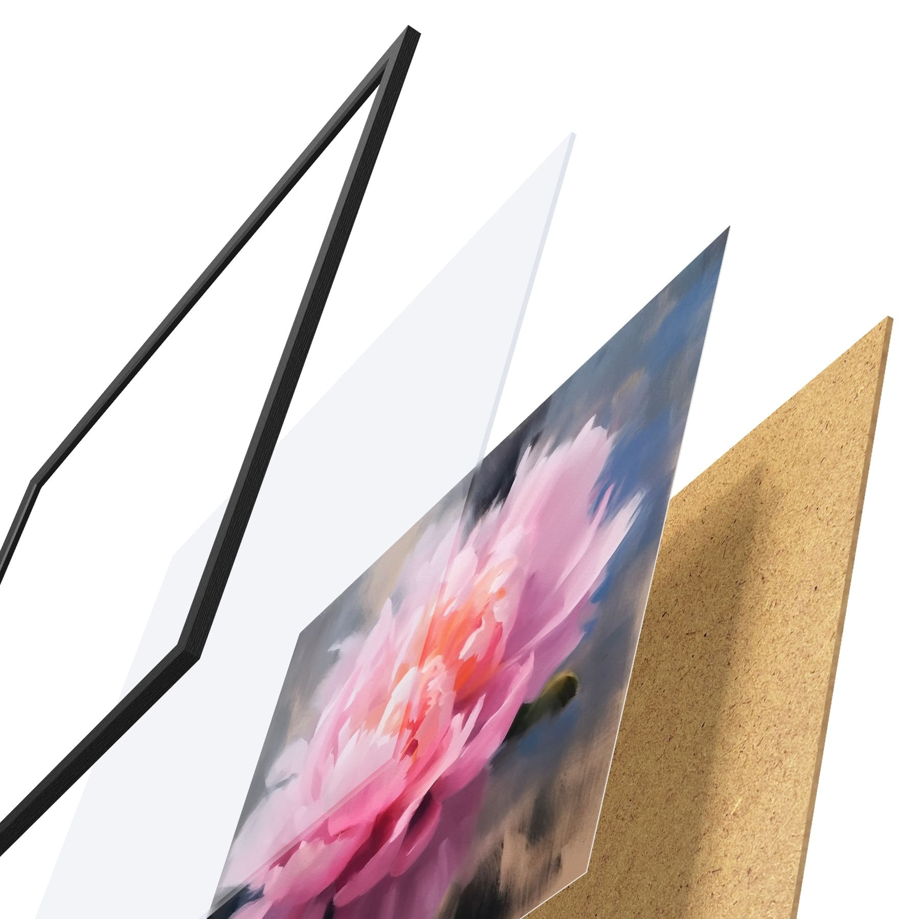 Le poster se compose d'un cadre, d'un plexiglas, d'une image imprimée et d'un support en aggloméré. Le poster peut être immédiatement accroché au mur grâce aux fixations au dos.