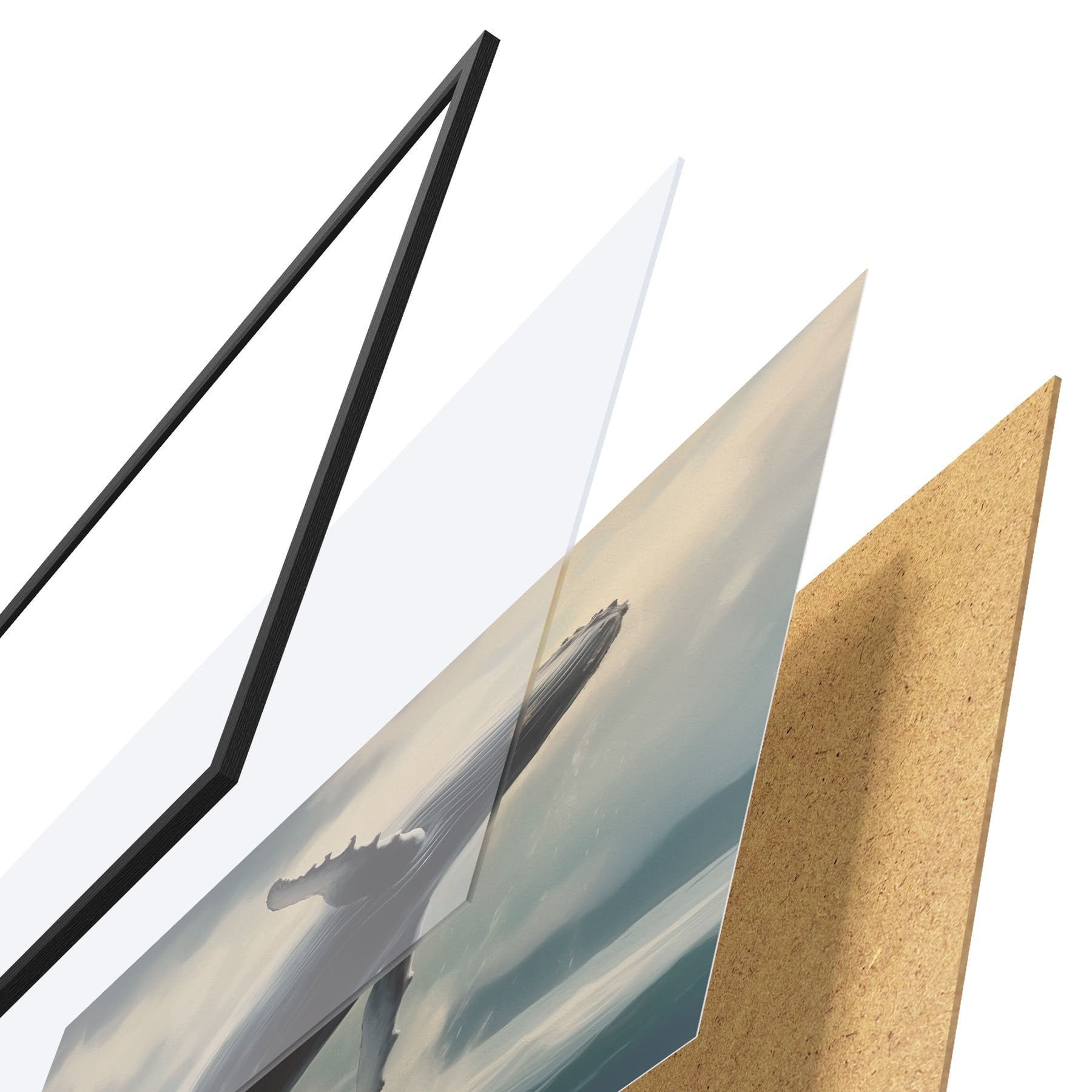 Le poster se compose d'un cadre, d'un plexiglas, d'une image imprimée et d'un support en aggloméré. Le poster peut être immédiatement accroché au mur grâce aux fixations au dos.