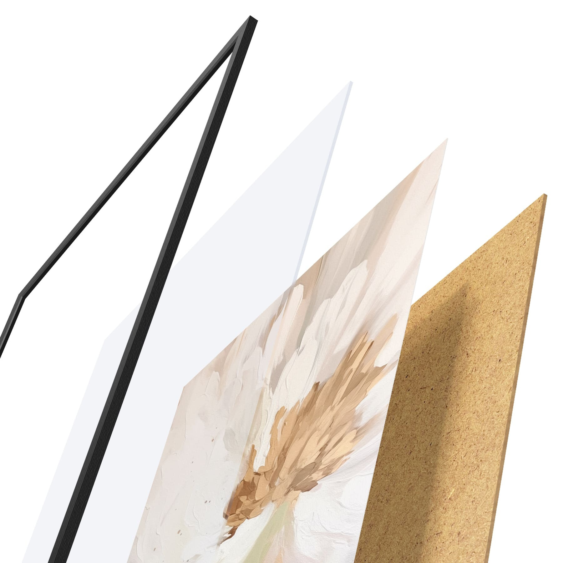 Le poster se compose d'un cadre, d'un plexiglas, d'une image imprimée et d'un support en aggloméré. Le poster peut être immédiatement accroché au mur grâce aux fixations au dos.