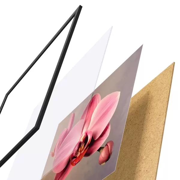 Le poster se compose d'un cadre, d'un plexiglas, d'une image imprimée et d'un support en aggloméré. Le poster peut être immédiatement accroché au mur grâce aux fixations au dos.