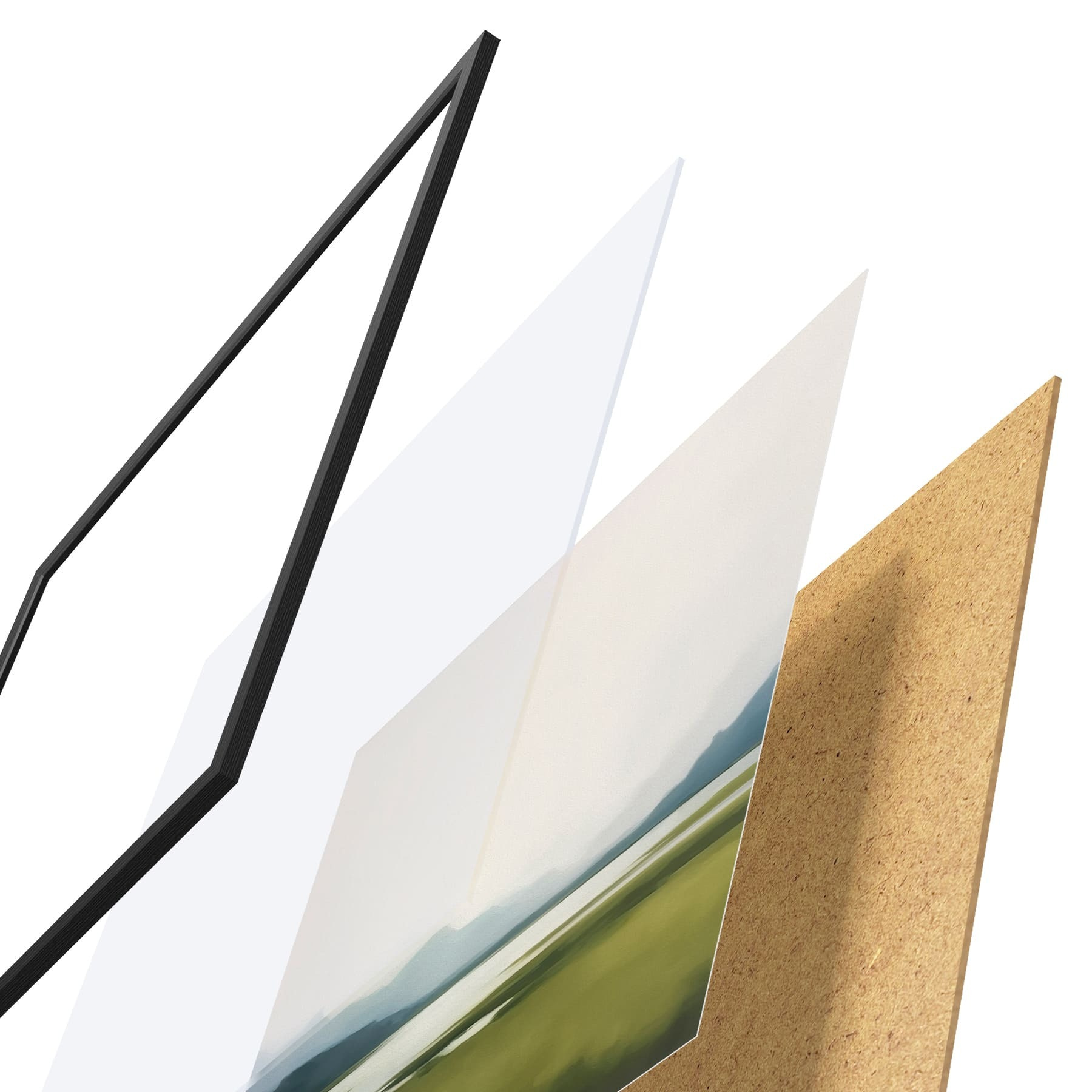Le poster se compose d'un cadre, d'un plexiglas, d'une image imprimée et d'un support en aggloméré. Le poster peut être immédiatement accroché au mur grâce aux fixations au dos.