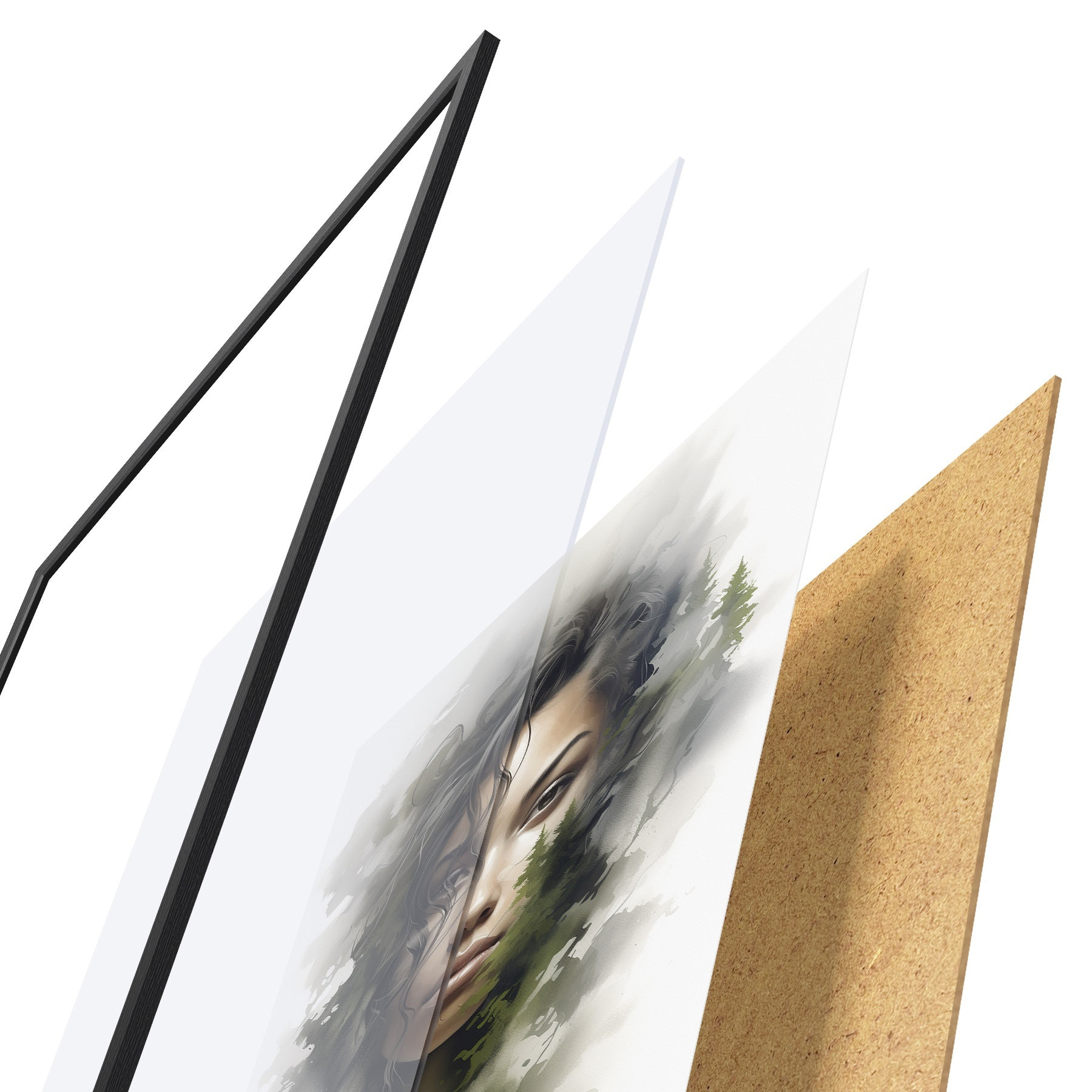 Le poster se compose d'un cadre, d'un plexiglas, d'une image imprimée et d'un support en aggloméré. Le poster peut être immédiatement accroché au mur grâce aux fixations au dos.