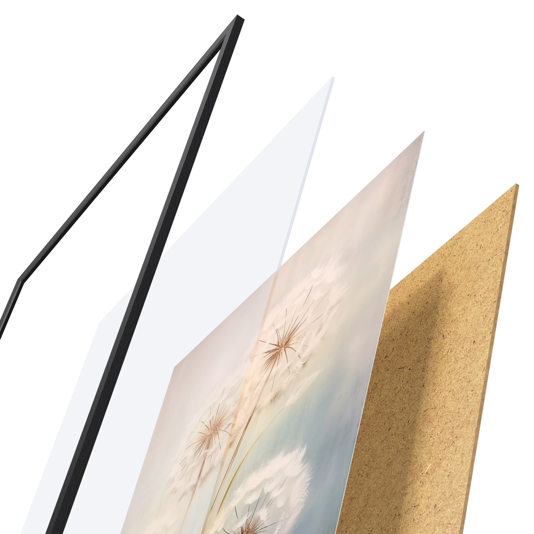 Le poster se compose d'un cadre, d'un plexiglas, d'une image imprimée et d'un support en aggloméré. Le poster peut être immédiatement accroché au mur grâce aux fixations au dos.