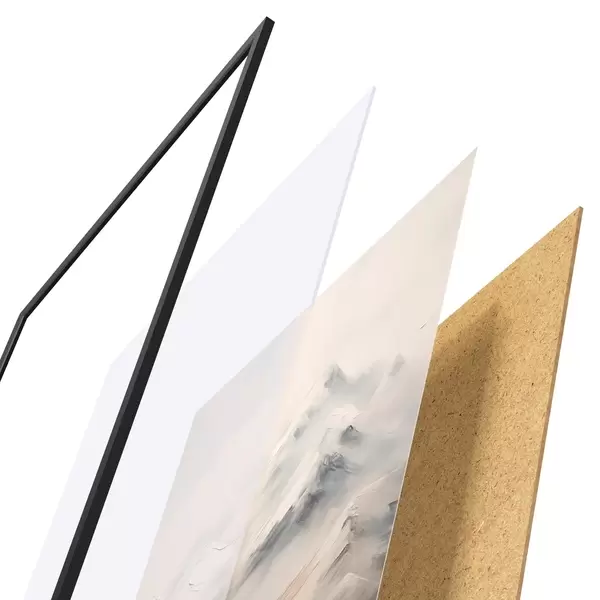 Le poster se compose d'un cadre, d'un plexiglas, d'une image imprimée et d'un support en aggloméré. Le poster peut être immédiatement accroché au mur grâce aux fixations au dos.
