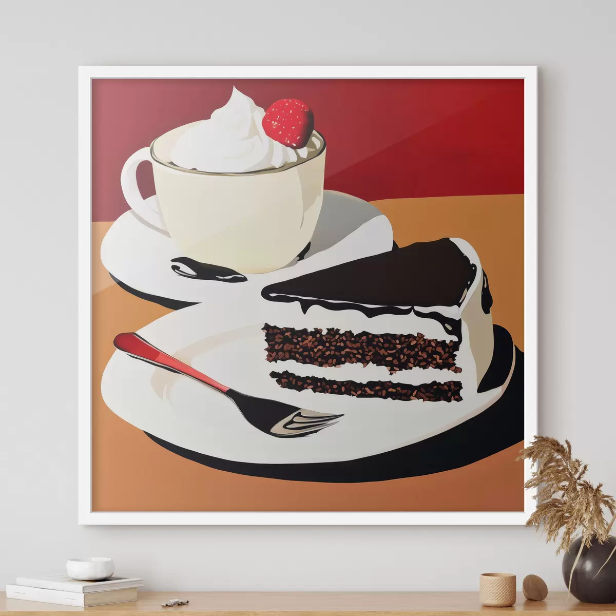 Affiche Une tasse de café et une part de gâteau Non f43293