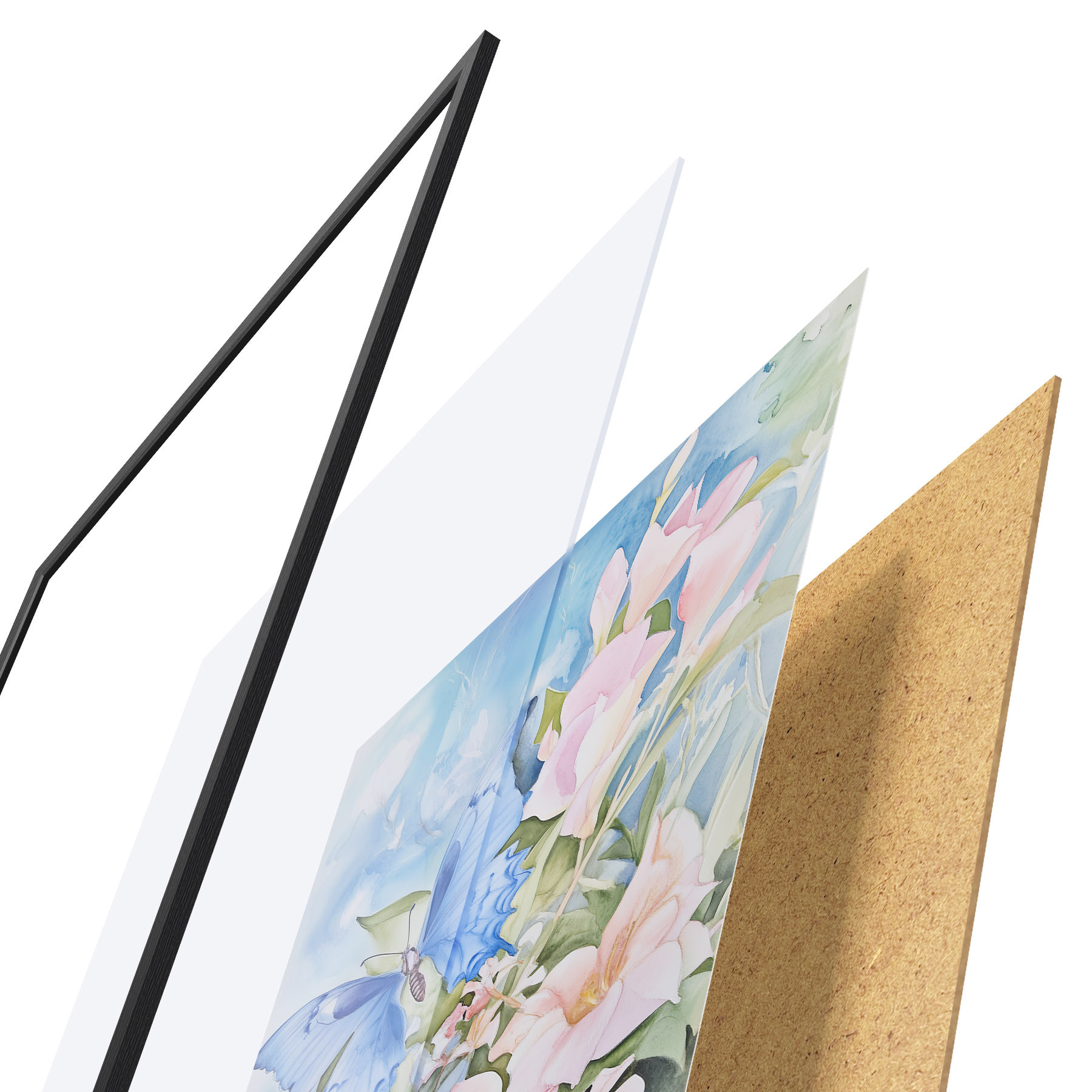Le poster se compose d'un cadre, d'un plexiglas, d'une image imprimée et d'un support en aggloméré. Le poster peut être immédiatement accroché au mur grâce aux fixations au dos.