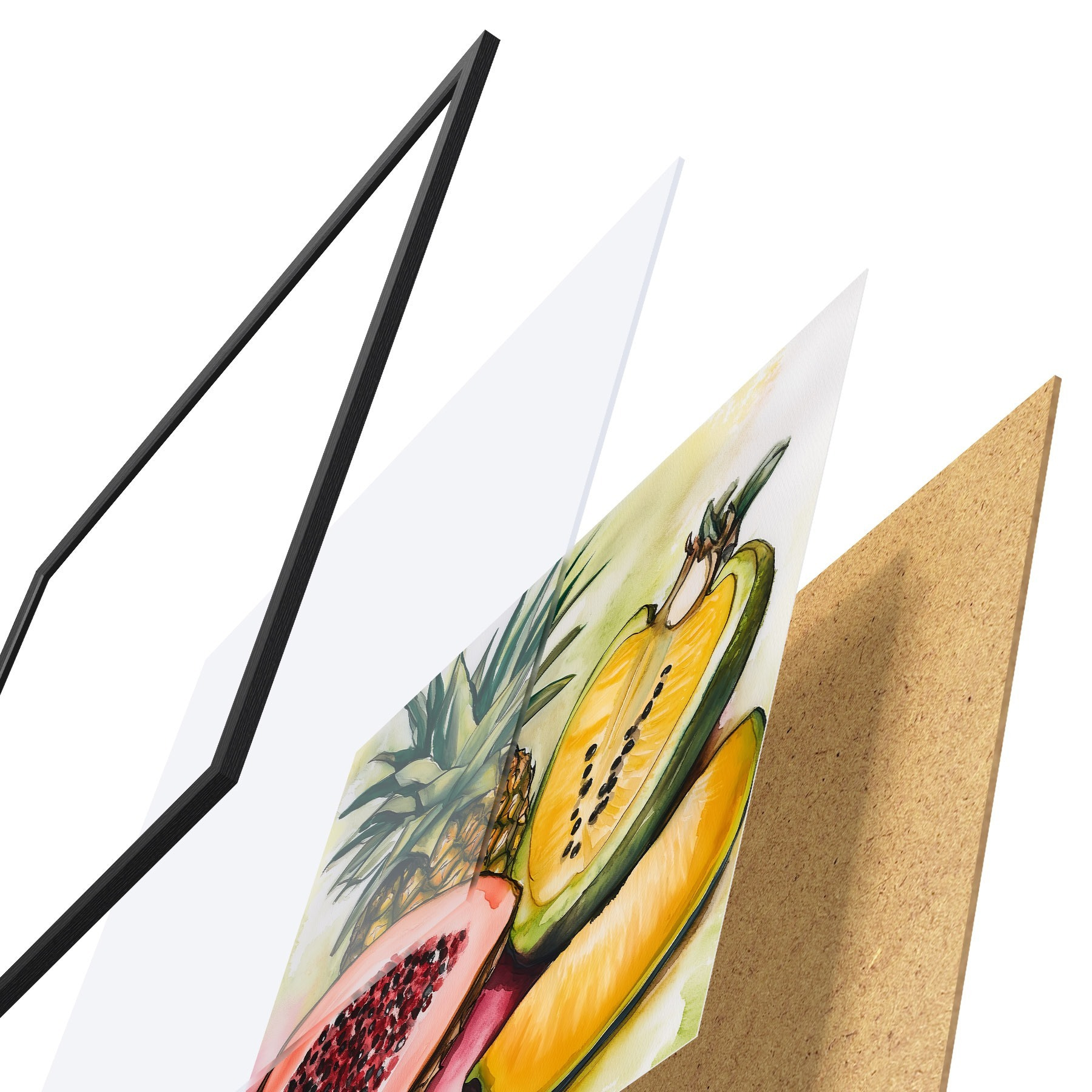 Le poster se compose d'un cadre, d'un plexiglas, d'une image imprimée et d'un support en aggloméré. Le poster peut être immédiatement accroché au mur grâce aux fixations au dos.