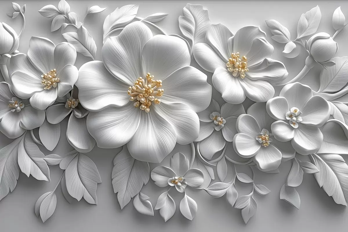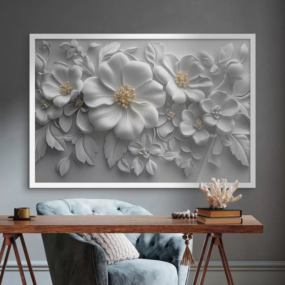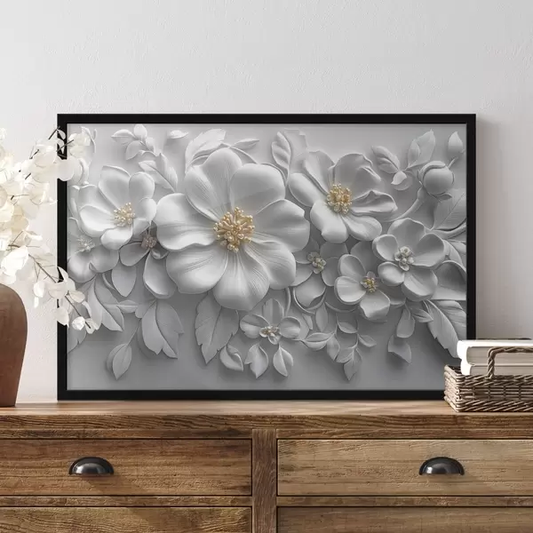 Affiche fleurs grises 3d avec un accent jaune f43310
