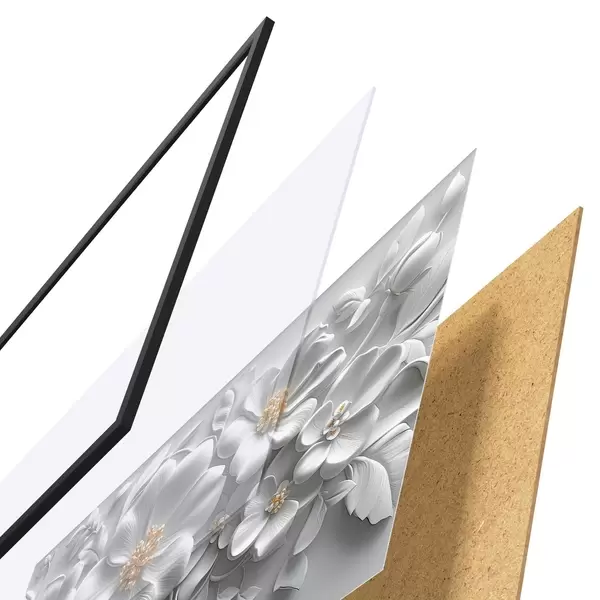 Le poster se compose d'un cadre, d'un plexiglas, d'une image imprimée et d'un support en aggloméré. Le poster peut être immédiatement accroché au mur grâce aux fixations au dos.