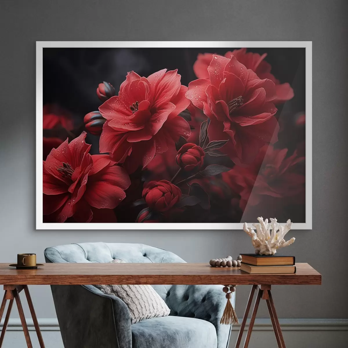 Affiche Fleurs rouges sur fond sombre Non f43318