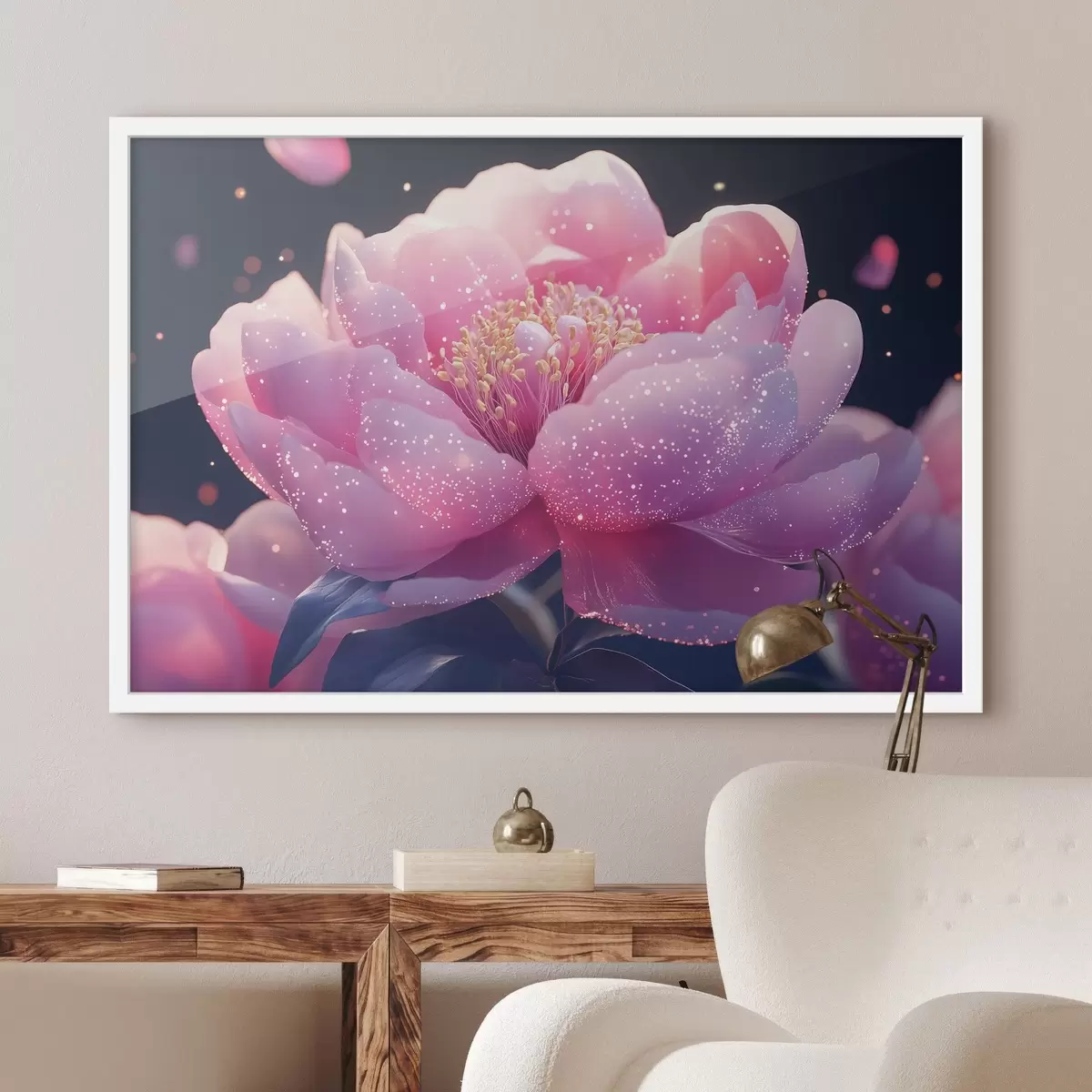 Affiche Grande fleur rose tendre avec rayons de soleil Non f43327