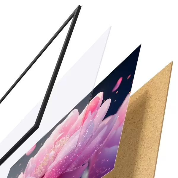 Le poster se compose d'un cadre, d'un plexiglas, d'une image imprimée et d'un support en aggloméré. Le poster peut être immédiatement accroché au mur grâce aux fixations au dos.