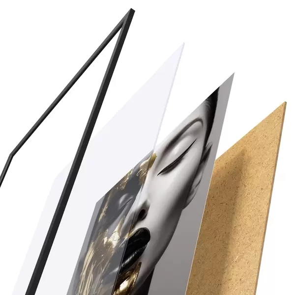 Le poster se compose d'un cadre, d'un plexiglas, d'une image imprimée et d'un support en aggloméré. Le poster peut être immédiatement accroché au mur grâce aux fixations au dos.