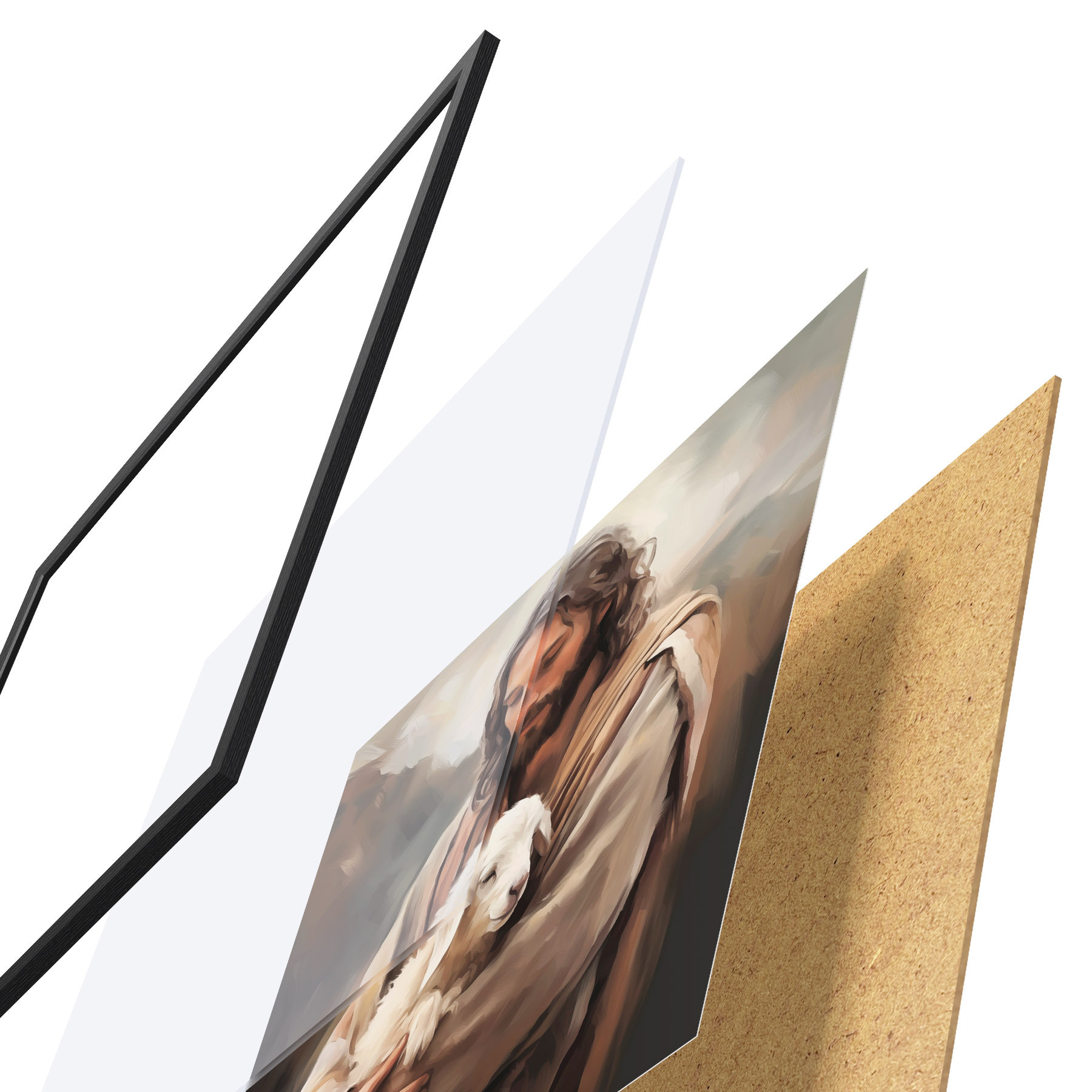 Le poster se compose d'un cadre, d'un plexiglas, d'une image imprimée et d'un support en aggloméré. Le poster peut être immédiatement accroché au mur grâce aux fixations au dos.