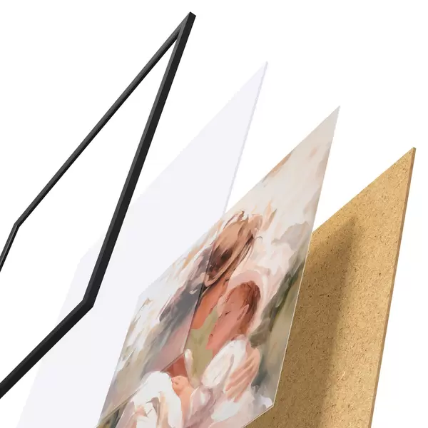 Le poster se compose d'un cadre, d'un plexiglas, d'une image imprimée et d'un support en aggloméré. Le poster peut être immédiatement accroché au mur grâce aux fixations au dos.