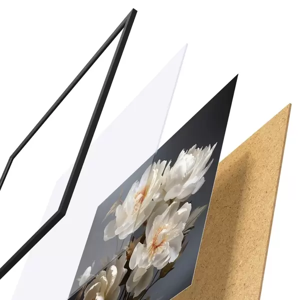 Le poster se compose d'un cadre, d'un plexiglas, d'une image imprimée et d'un support en aggloméré. Le poster peut être immédiatement accroché au mur grâce aux fixations au dos.
