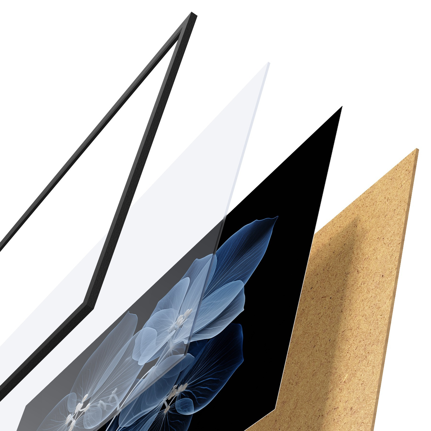 Le poster se compose d'un cadre, d'un plexiglas, d'une image imprimée et d'un support en aggloméré. Le poster peut être immédiatement accroché au mur grâce aux fixations au dos.